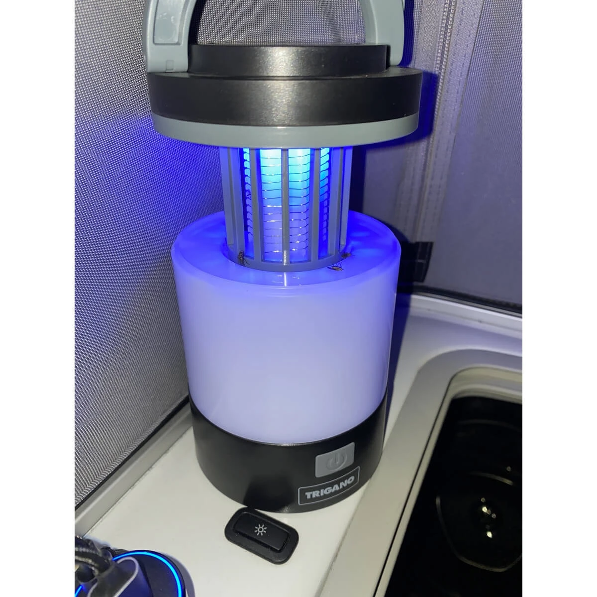 Lanterne collapside rechargeable. La lanterne s’ouvre vers le haut pour activer la fonction anti-moustique.